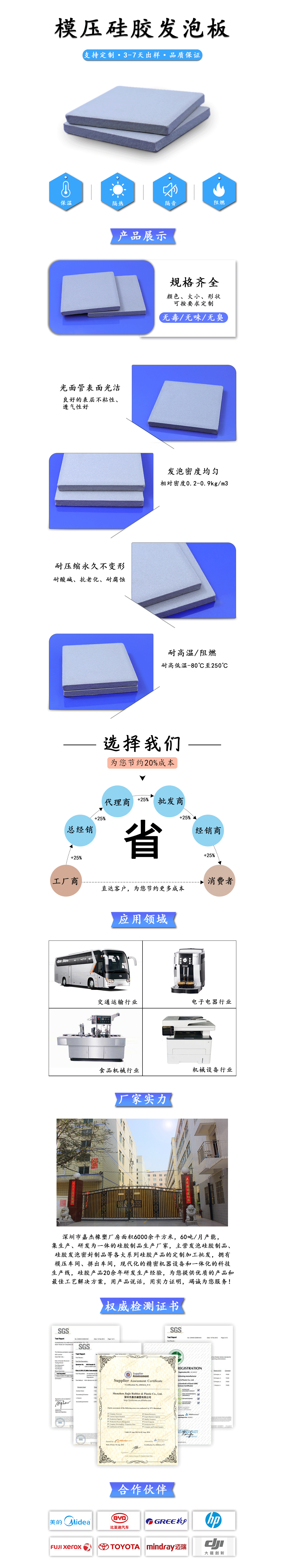 模壓硅膠發泡板: 采用優質硅膠原料制作,安全無毒無味、顏色、大小、形狀可按要求定制
